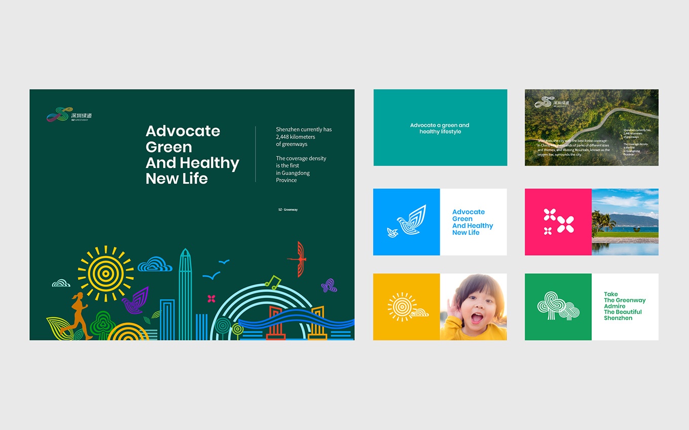 深圳通過十幾年的努力,堅持綠色低碳發展,建設了幾千公里的綠道。為了深圳綠道體系擁有統一的形象標識,作為城市名片更好地推廣與建設生態文明城市和宜居城市,委托了深圳市聯合創智設計顧問有限公司進行了logo設計、vi設計和標識標牌設計,深圳綠道視覺形象辨識度高,具有非常強的創新性和辨識度,能很好的代表著深圳年輕、活力、創新、國際化城市和設計之都的高度。